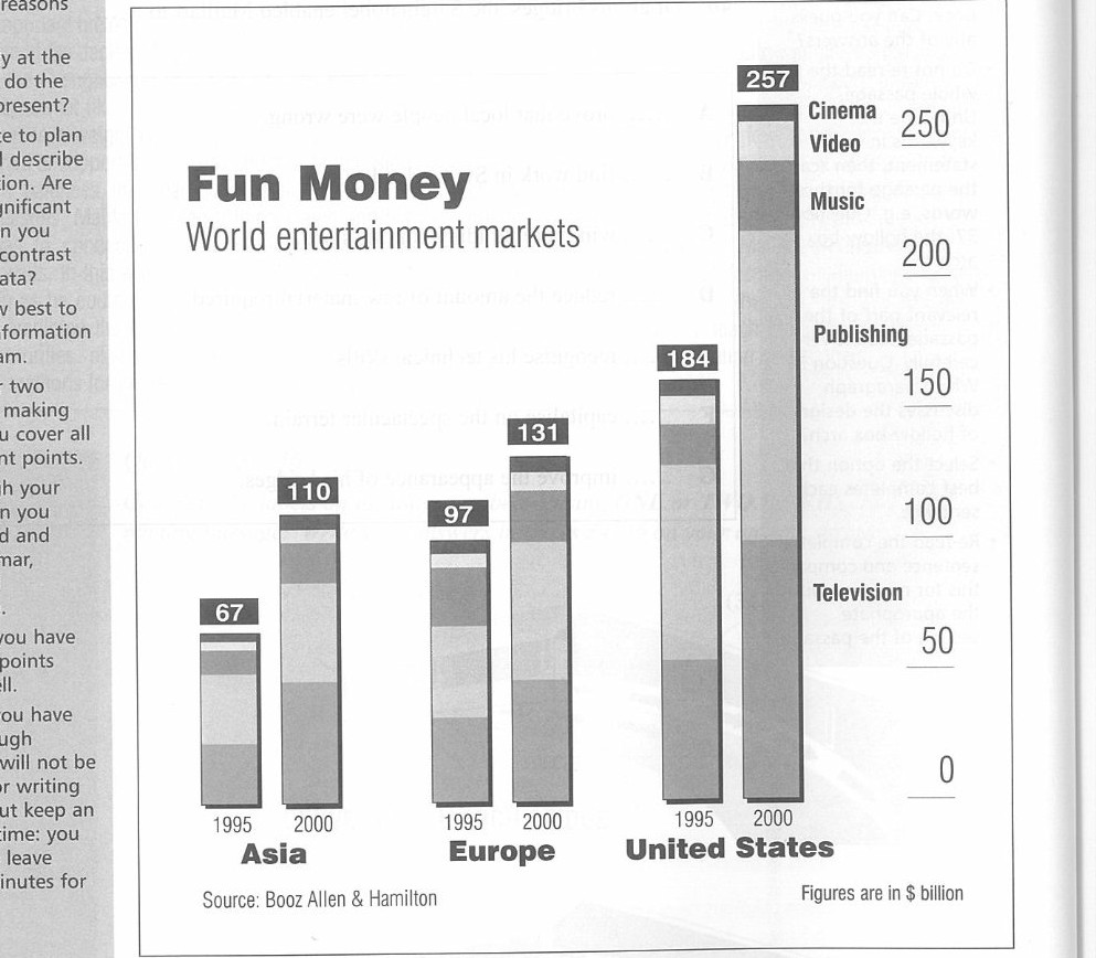 The graph below shows how money was spent on different forms of entertainment over a five-year period.